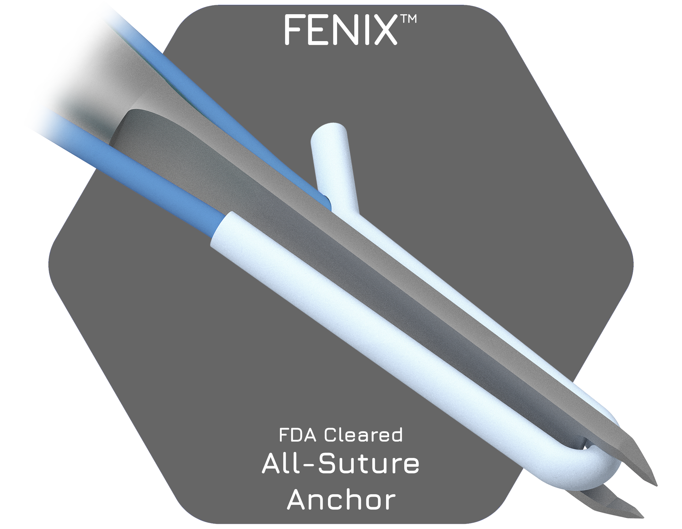 The FENIX™ anchor introduces a self-cinching mechanism to all-suture medial row fixation for rotator cuff repair, ensuring reliable deployment, consistent pullout strength, and clear surgeon feedback. Its compact profile allows for precise placement in tight surgical spaces. Offering exceptional pullout strength, it surpasses traditional all-suture designs in challenging bone conditions. With self-punching capability, the FENIX™ simplifies surgery by eliminating pilot holes, paving the way for a more confident and efficient approach to rotator cuff solutions.